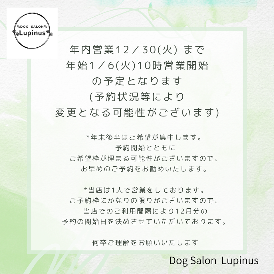 ※当店は1人で営業させていただいておりますので補助が必要なワンちゃんは施術が難しい場合がございます。予めご了承くださいませ。